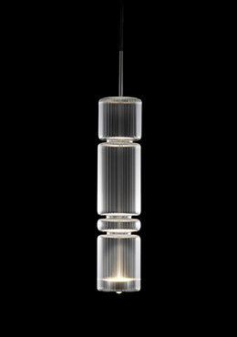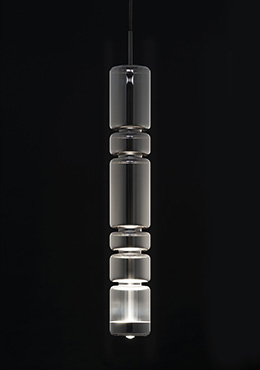 Blown glass, dual-emission pendant lamps designed to emit light in two directions. Calamus, inspired by an ancient writing instrument comes in two versions: 100 and 136.