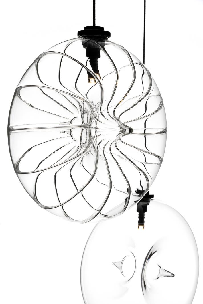 Belonging to the Nova collection, it is available in both transparent and frosted versions. Designed both to be hung individually and in scenic compositions, it exists in vertical and horizontal versions.