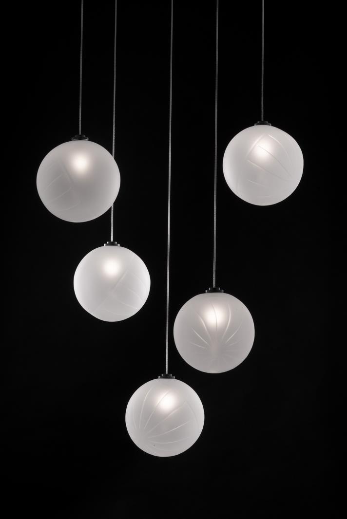 Handcrafted blown glass pendant, comes in a spherical shape of unique style and sophistication.
