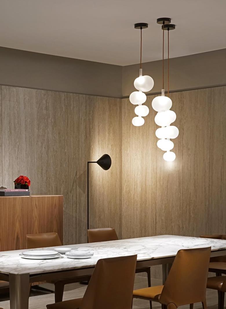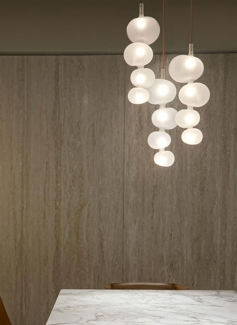Suspension lamp. Hand blown frosted glass.