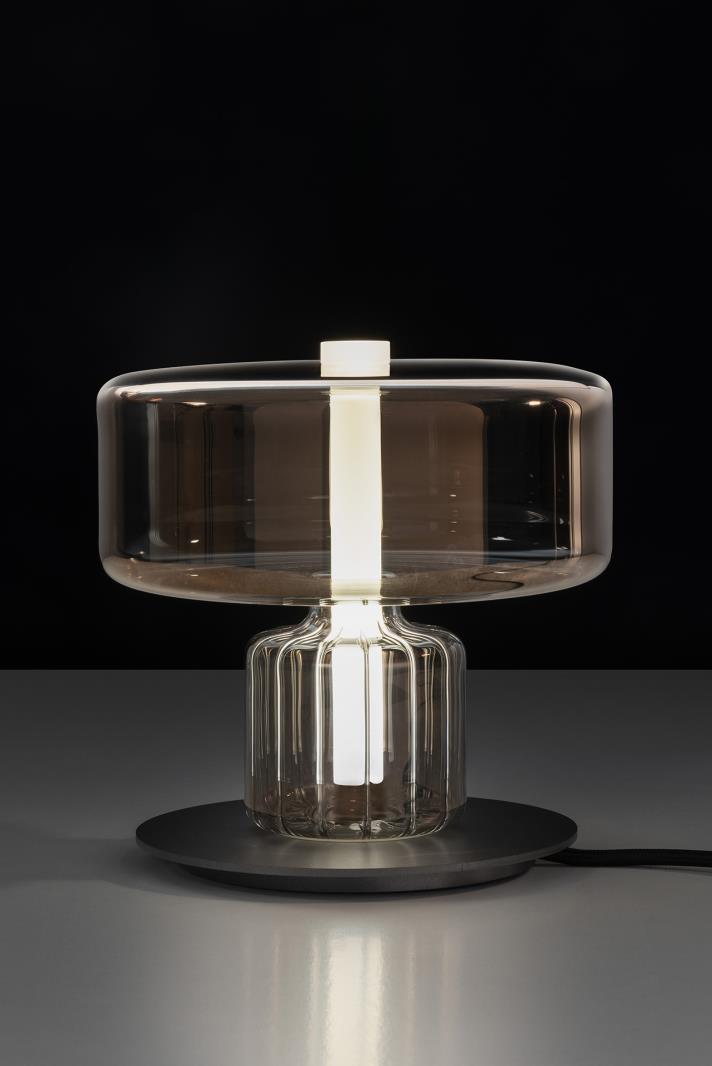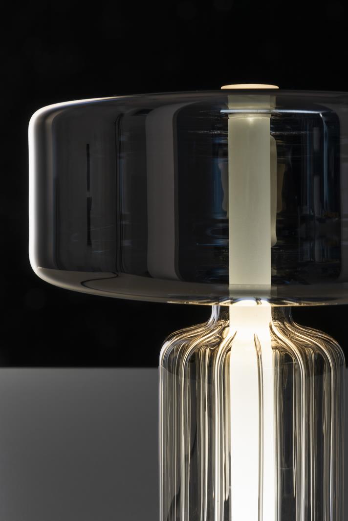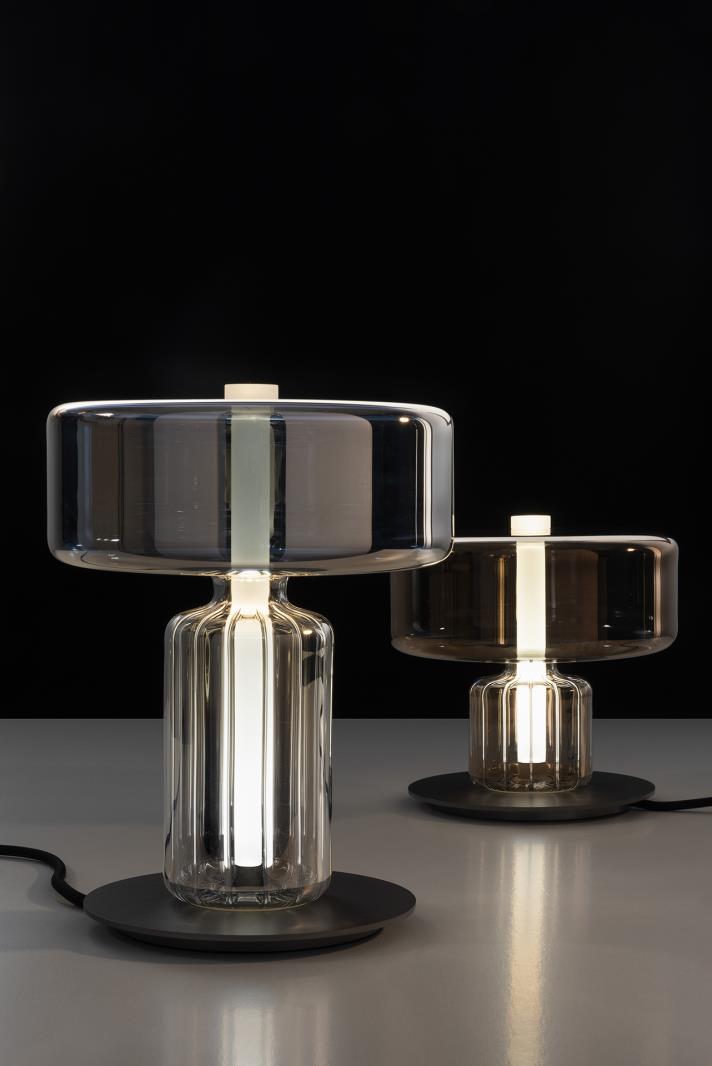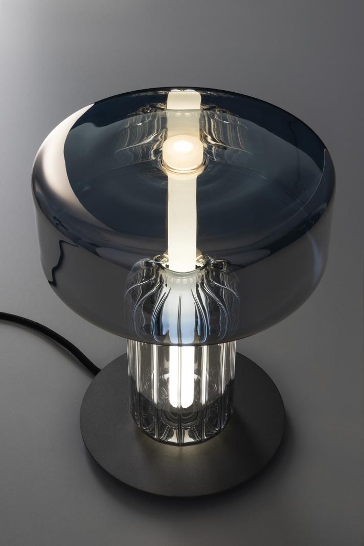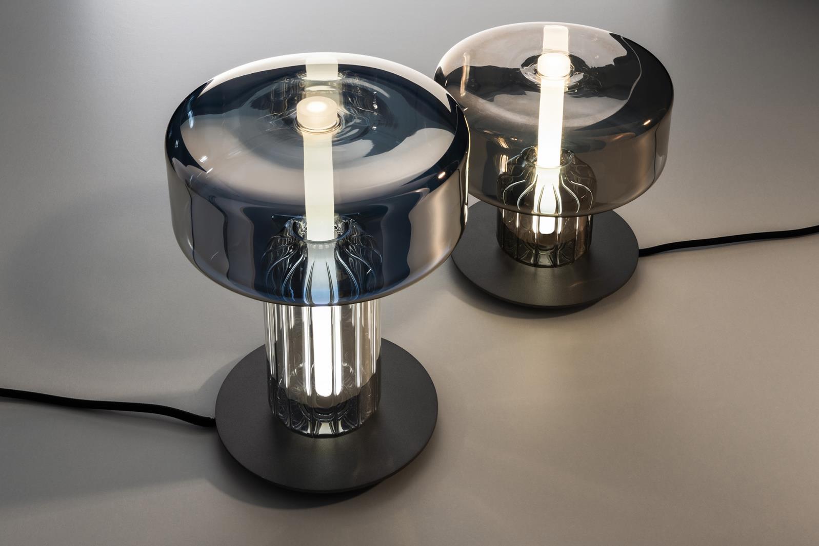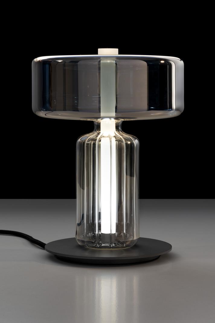 Table lamp. Hand blown glass with gold or silver metallic finish.