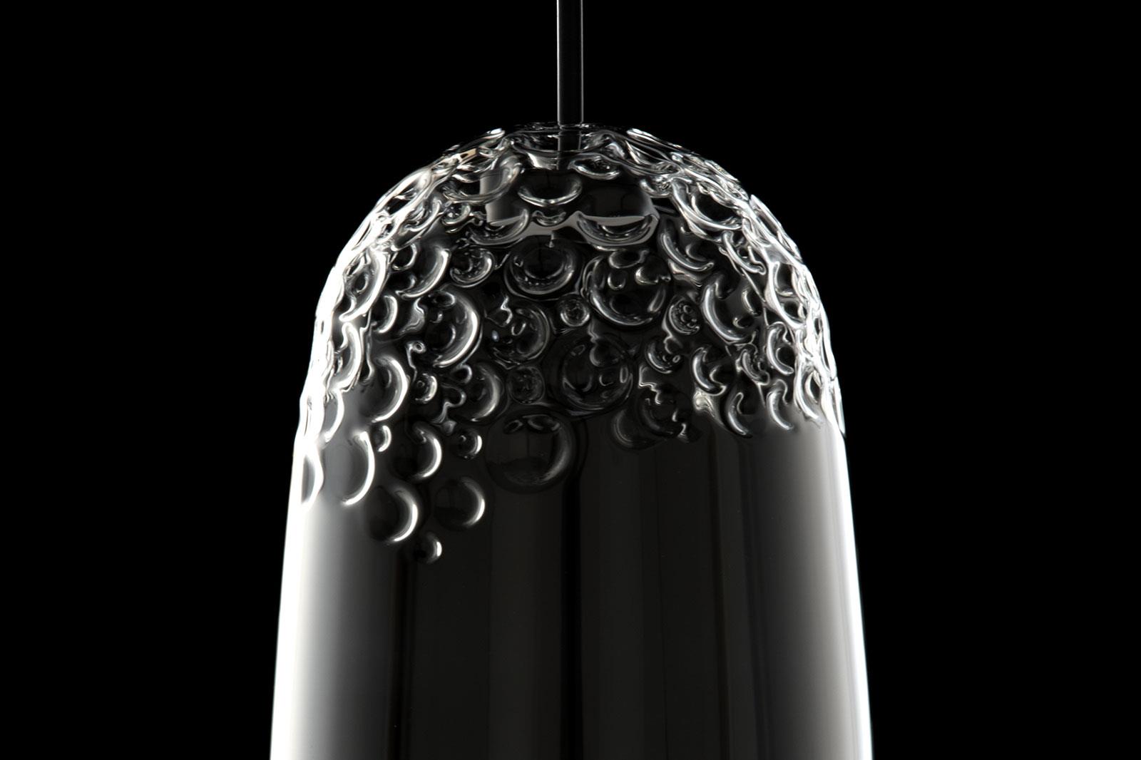Suspension lamp. Clear hand blown glass shape.
