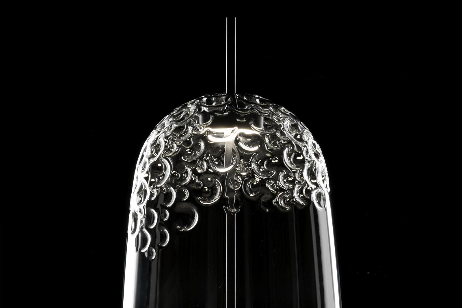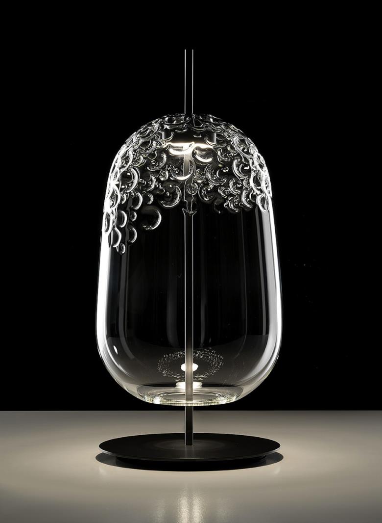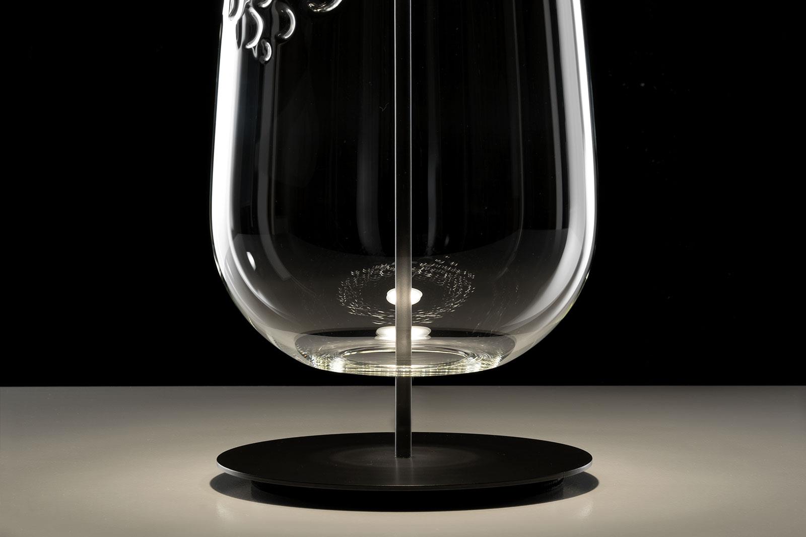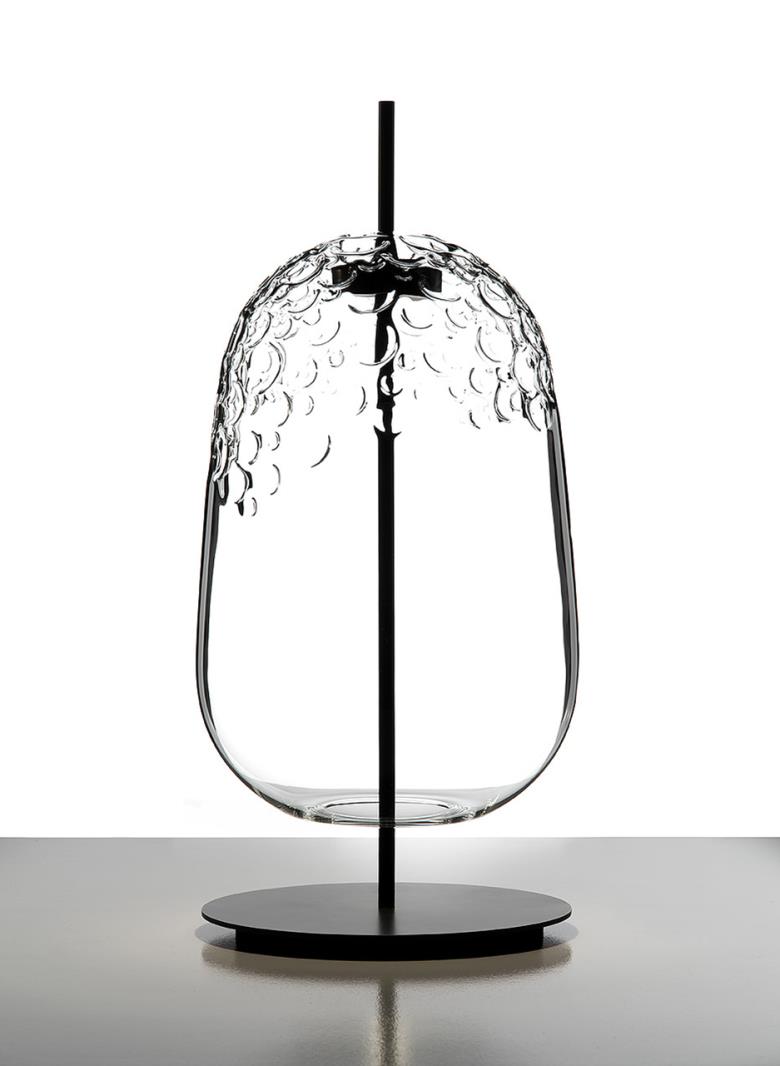 Table lamp. Clear hand blown glass shape.