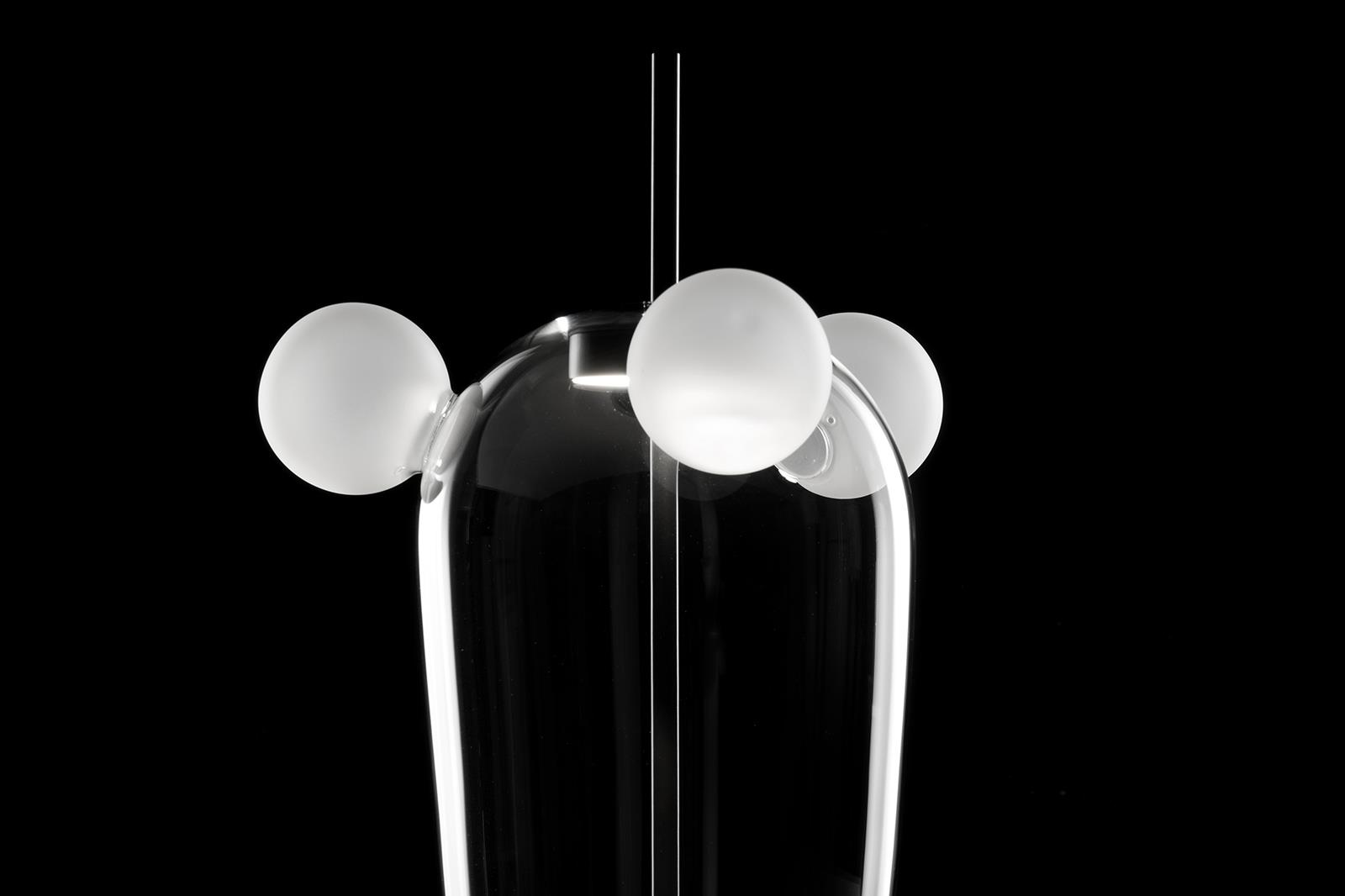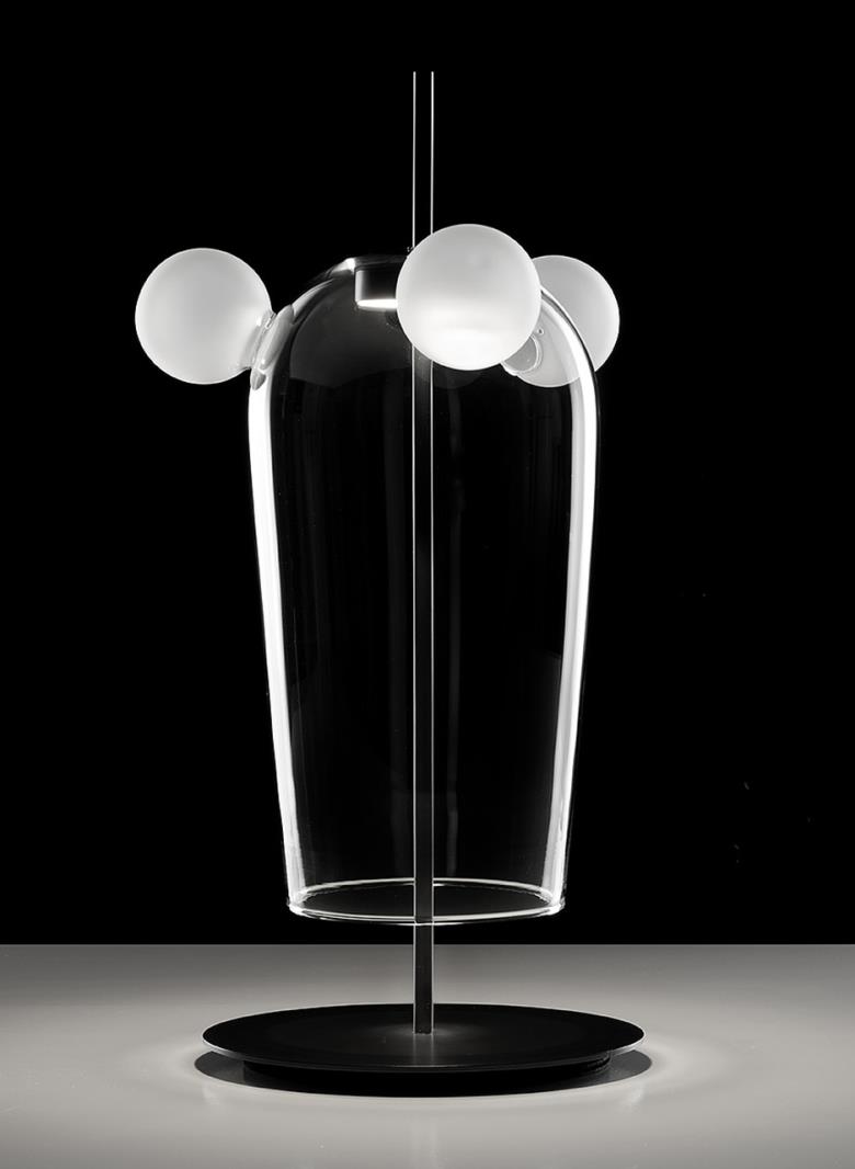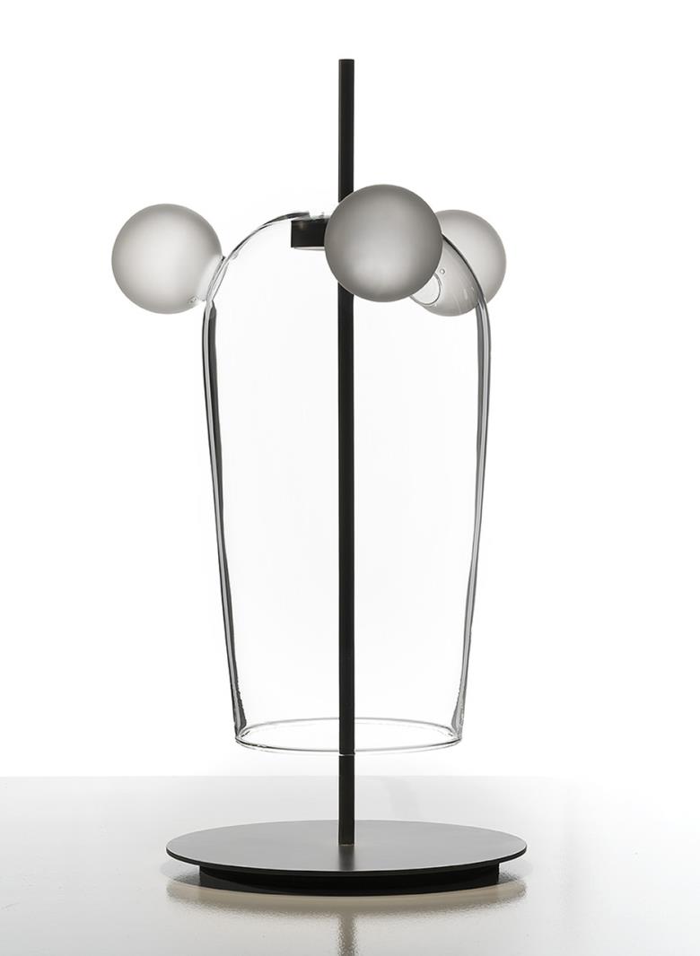 Table lamp. Clear hand-blown glass dome with frosted spheres.