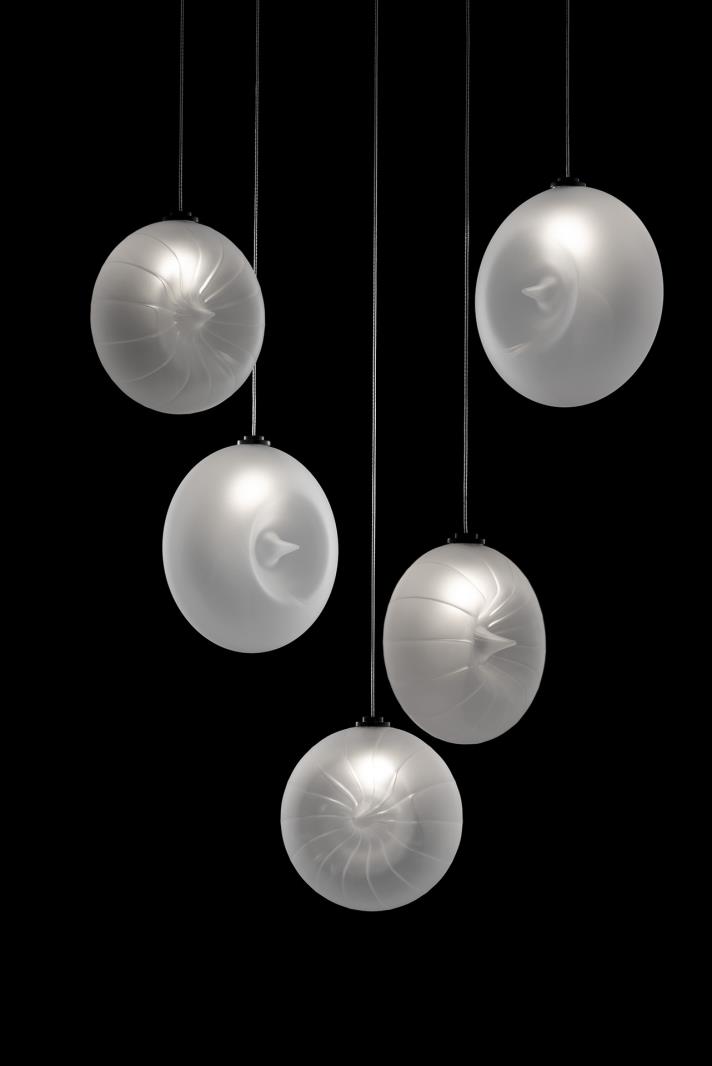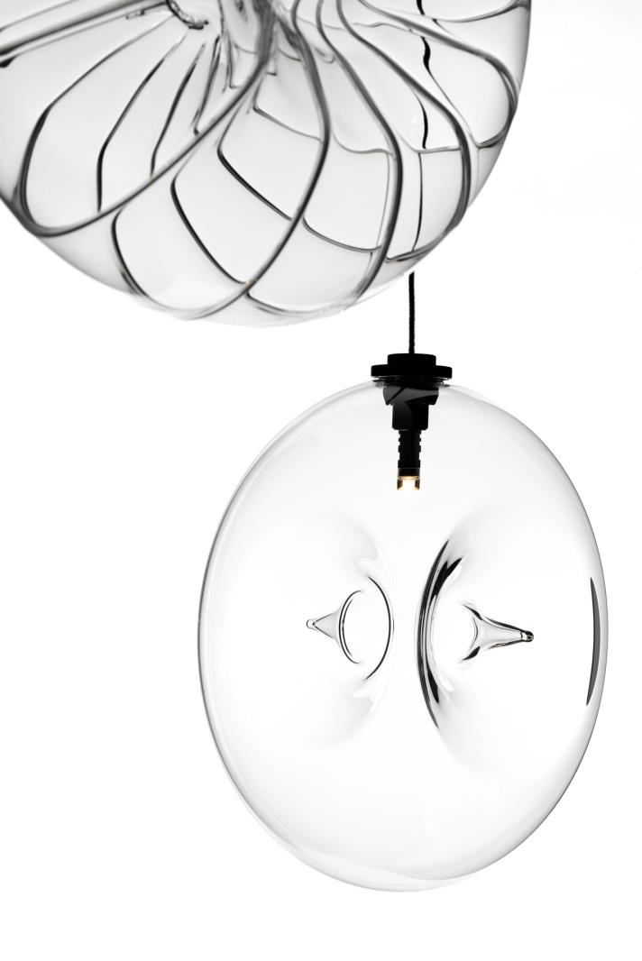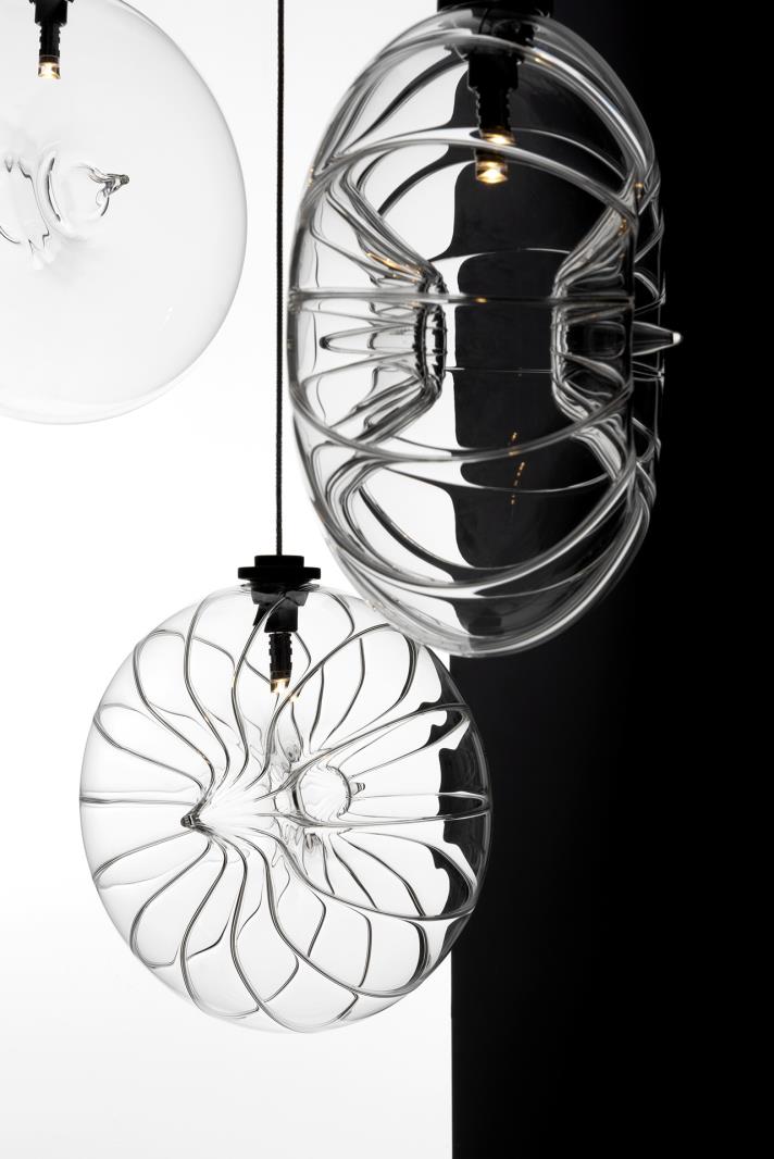 Belonging to the Nova collection, it is available in both transparent and frosted versions. Designed both to be hung individually and in scenic compositions, it exists in vertical and horizontal versions.