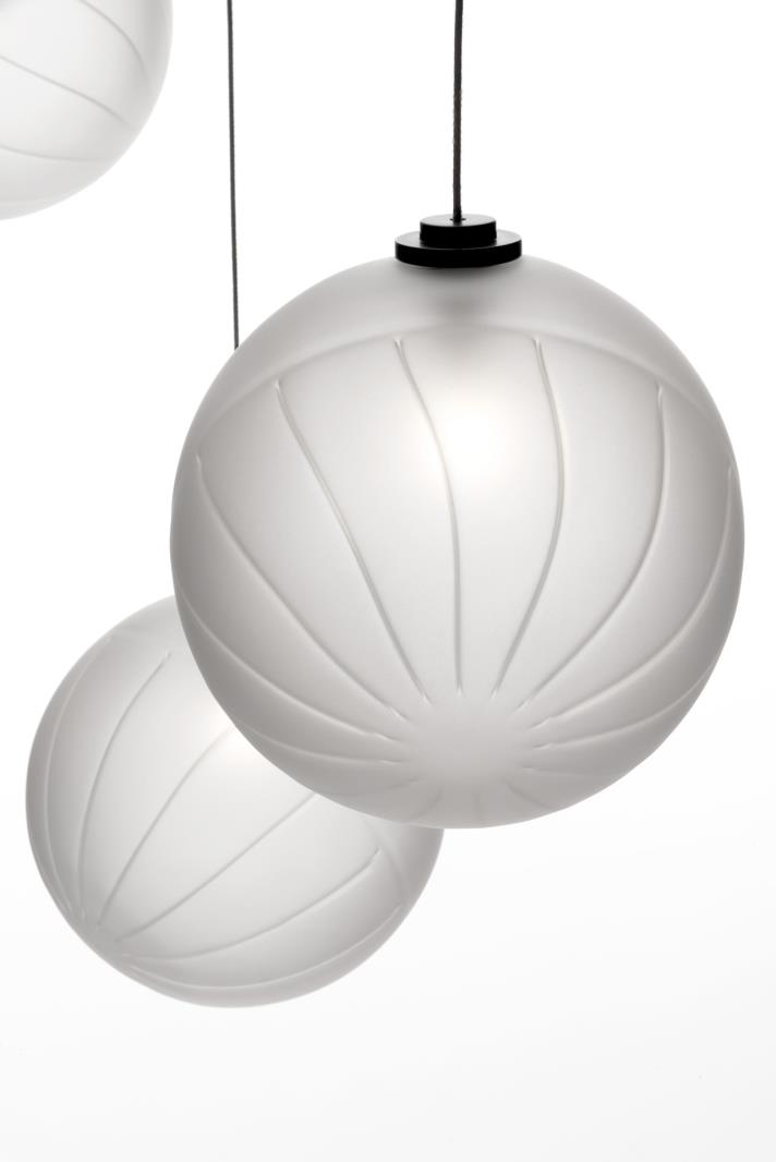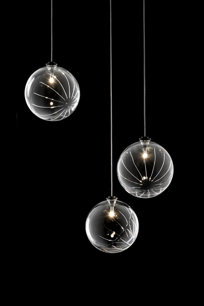 Handcrafted blown glass pendant, comes in a spherical shape of unique style and sophistication.