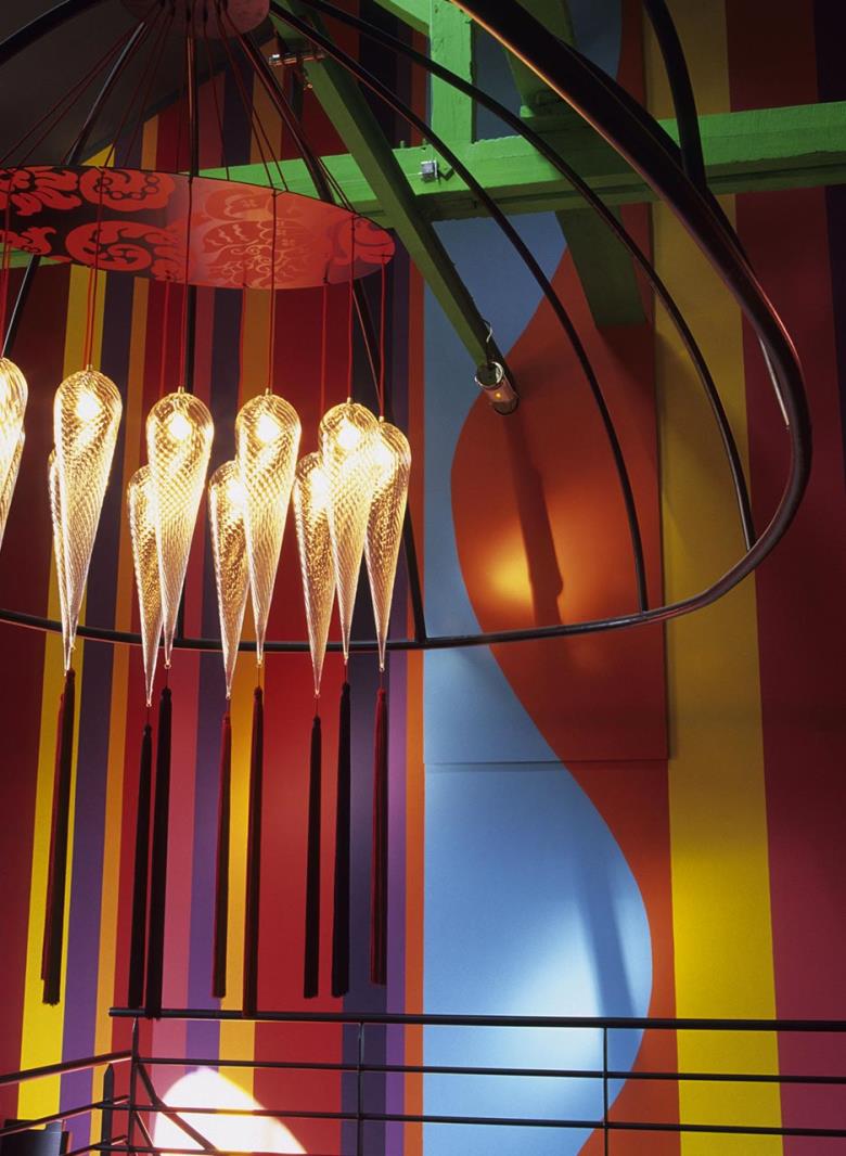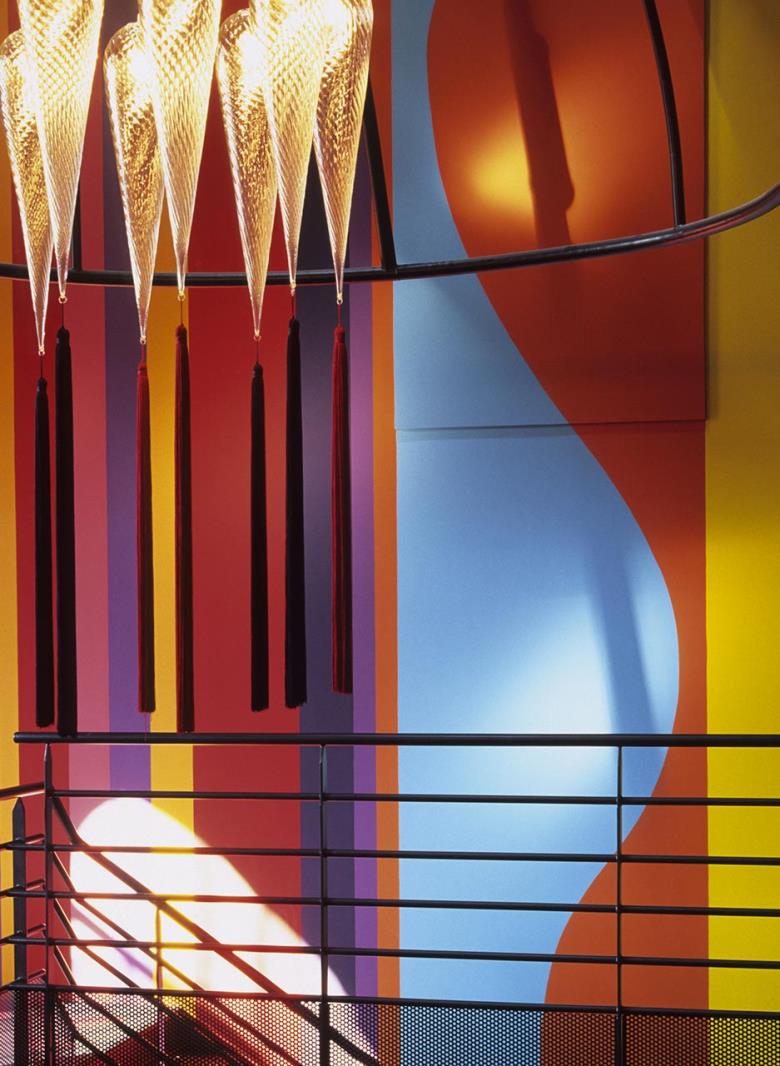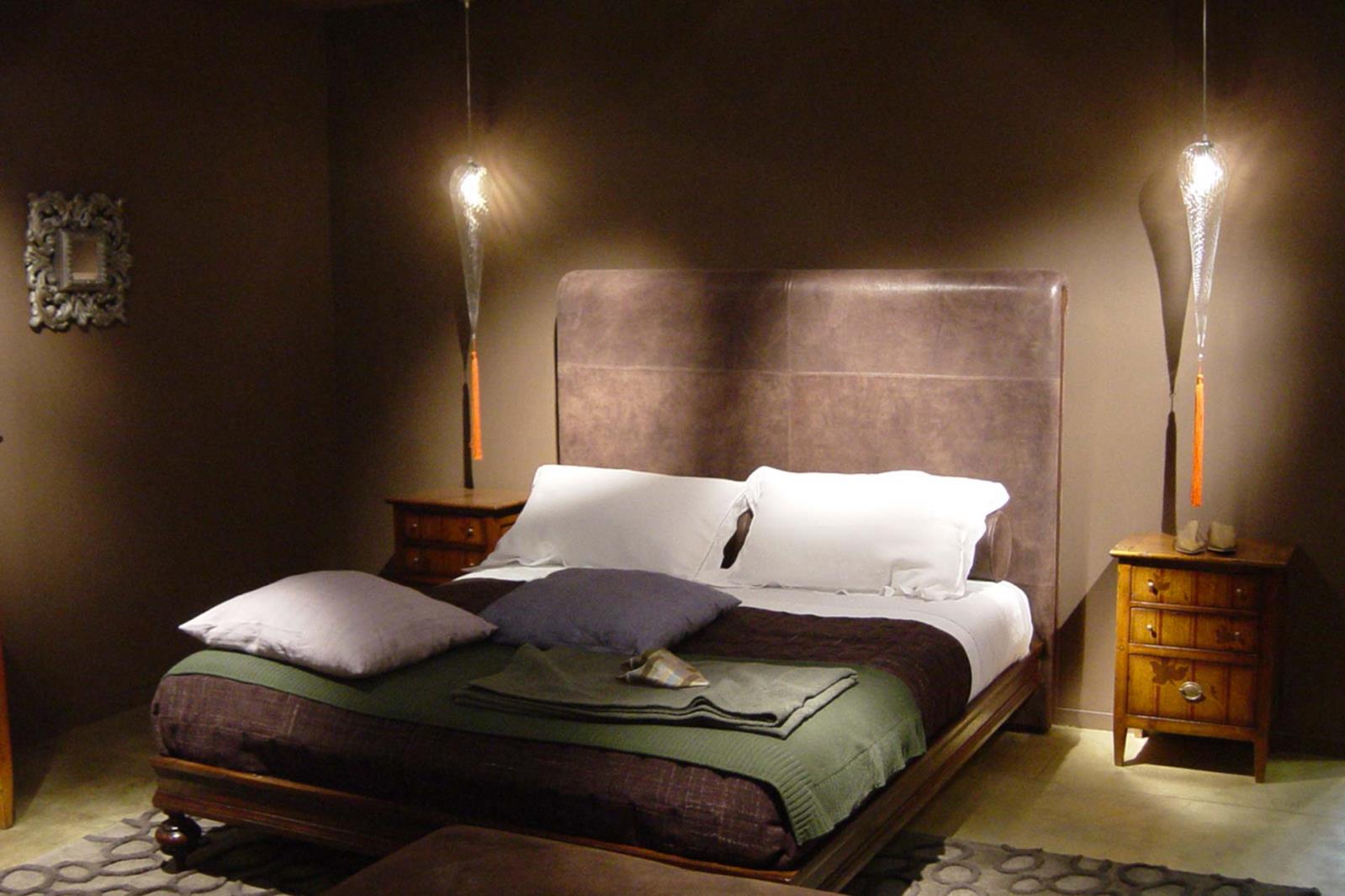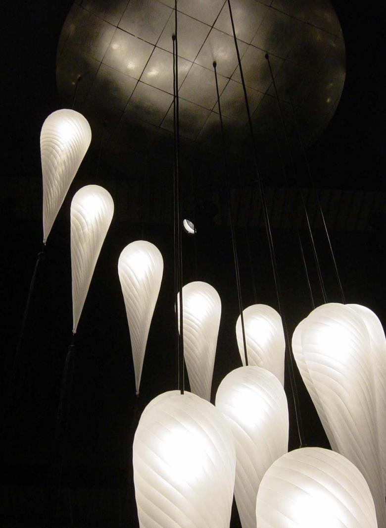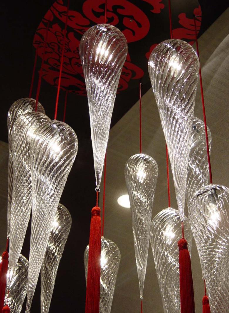 Suspension lamp in hand blown striped glass, clear or frosted, with 40 cm long tassel included. Also available with wall support.