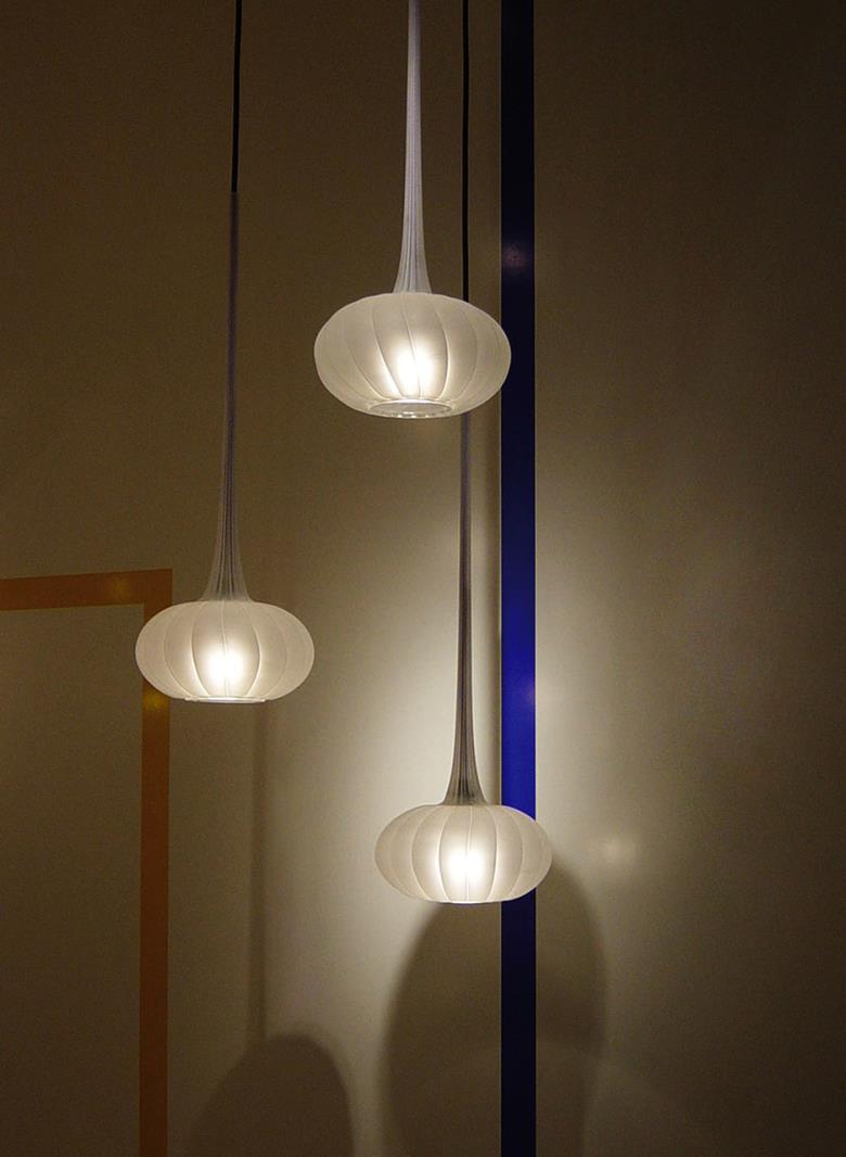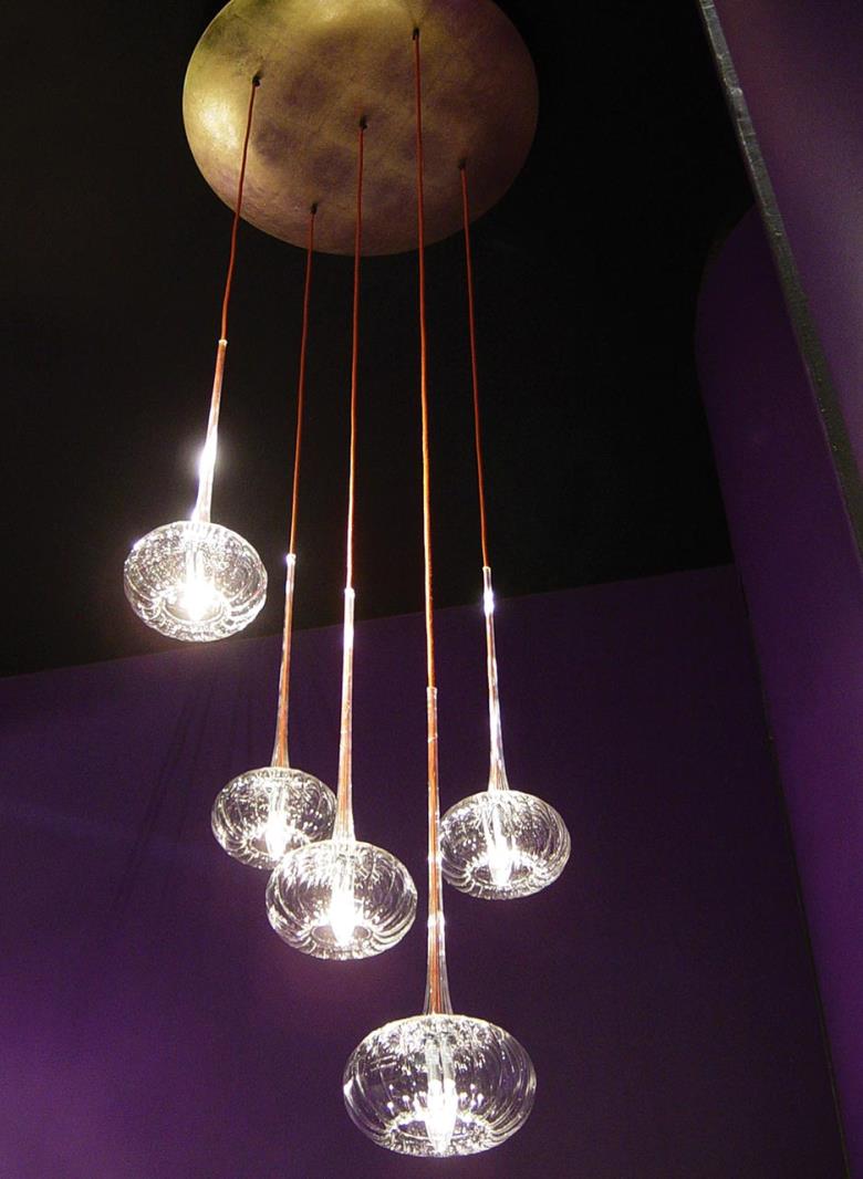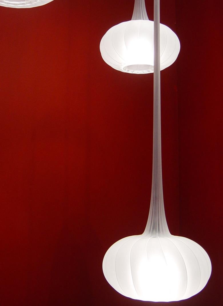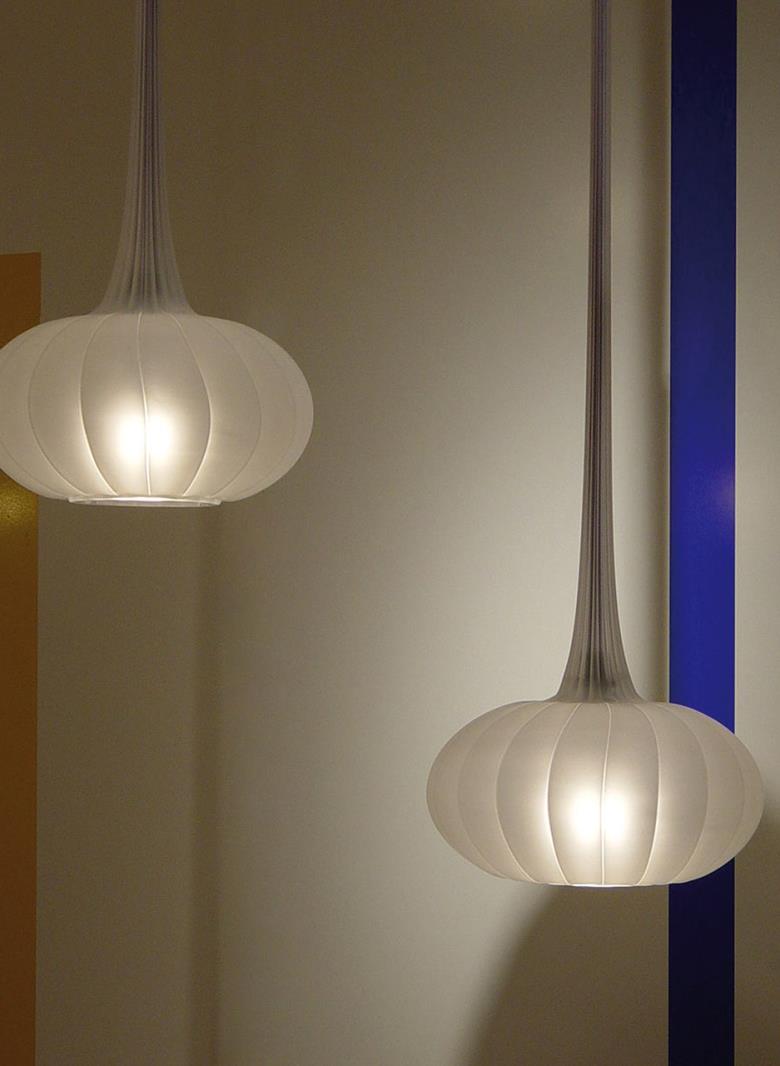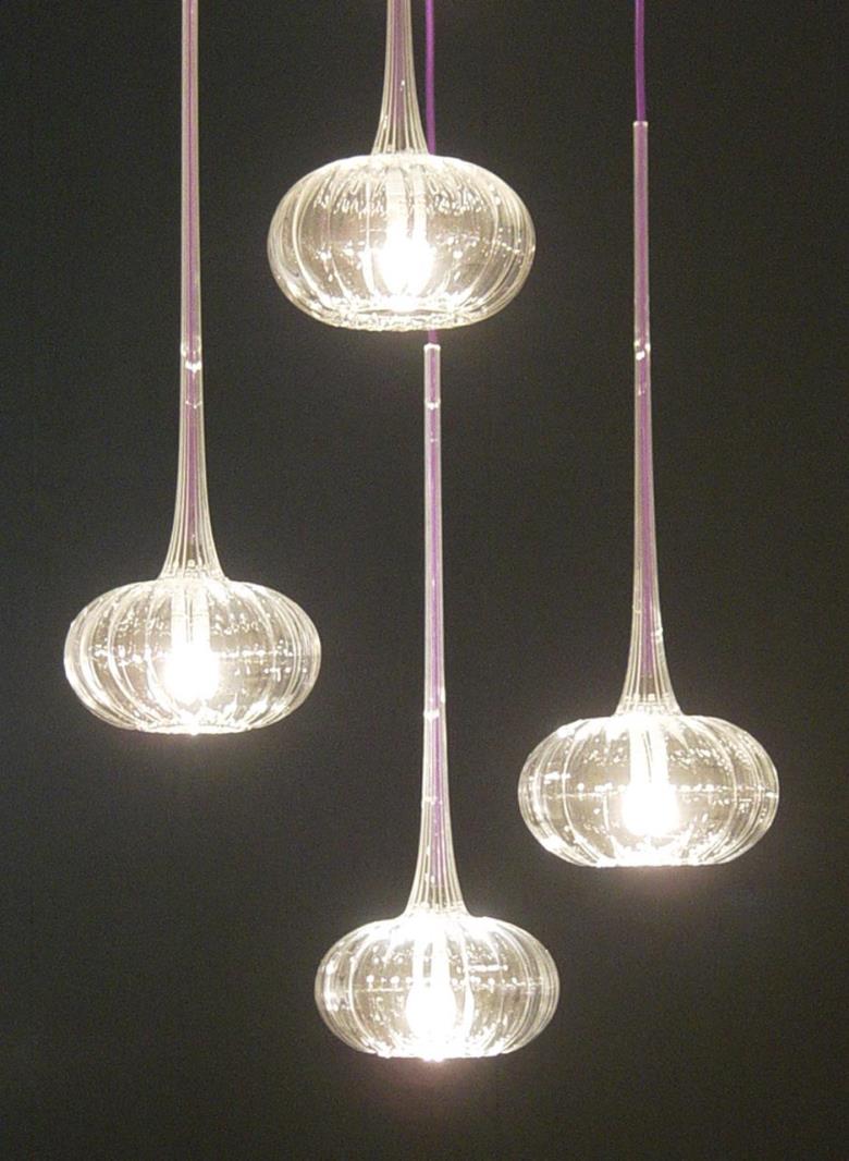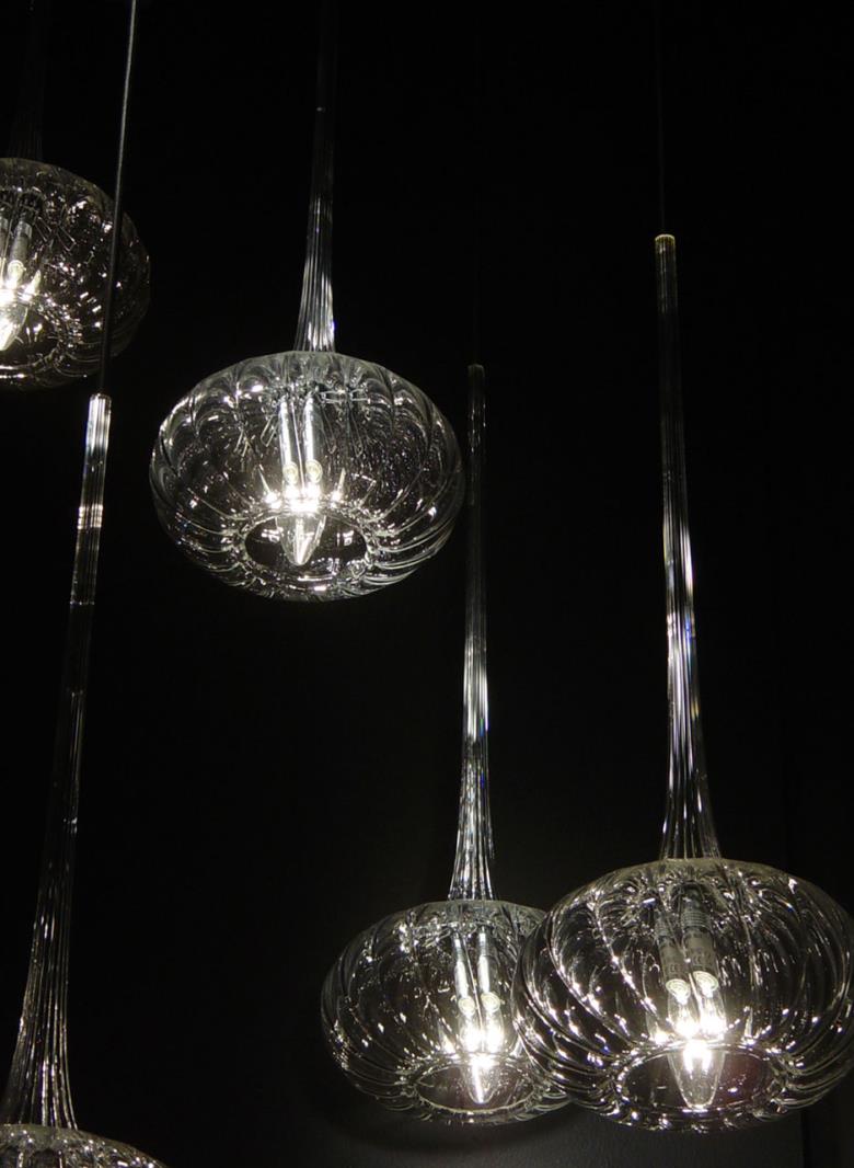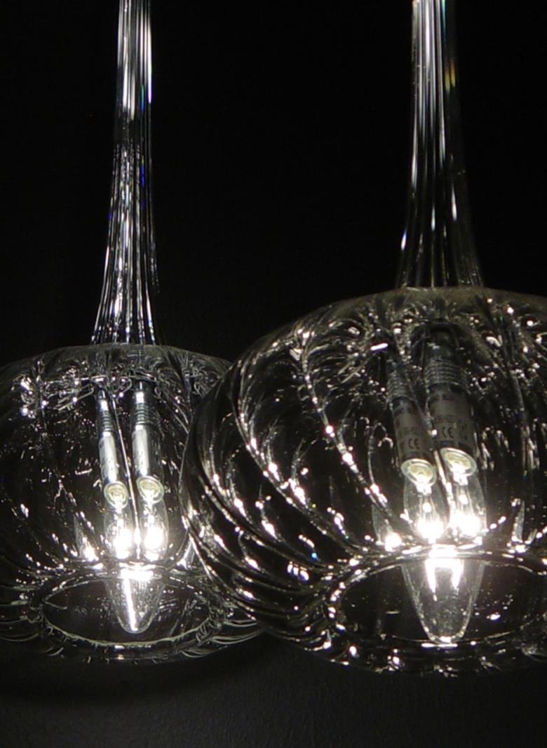 Suspension lamp in hand blown striped glass, clear or frosted.